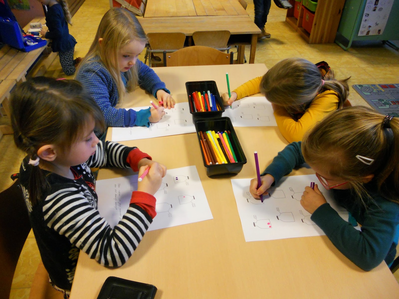 We tekenden evenveel pilletjes in het flesjes als het getalbeeld aangaf.